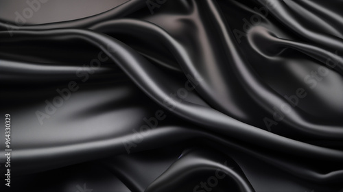 © Ella, Obraz premium Sleek black satin fabric with elegant folds, abstract background with copy space