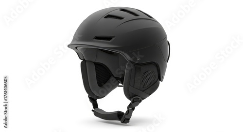 Fototapeta premium Sleek black ski helmet for winter sports safety, isolated on a clean white...
