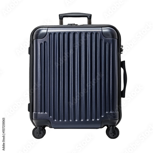© Nualsri, Fototapeta premium Sleek black suitcase with wheels and handle