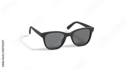 © ARI, Fototapeta premium Sleek black sunglasses with gray lenses, displayed against a white background.