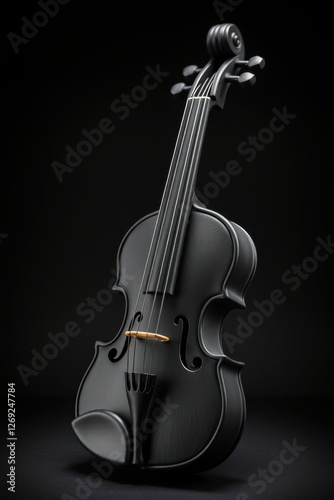 Naklejka premium Sleek black violin against a dark backdrop, showcasing its elegant design and musical artistry.