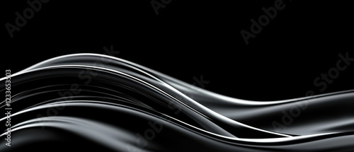 © praewpailyn, Obraz premium Sleek black waves create mesmerizing digital effect, showcasing smooth gradients and shimmering light. This elegant design evokes sense of calm and sophistication