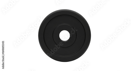 Fototapeta premium Sleek black weight plate rendered in a simple studio-style composition.