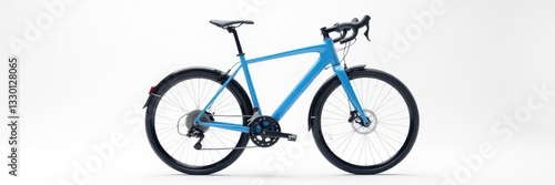 Obraz premium Sleek blue bicycle, pristine white background, gloss, freedom, backdrop