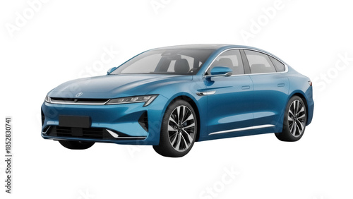© GODSTOX, Obraz premium Sleek blue electric sedan car isolated PNG, modern vehicle design for eco-friendly transportation and automotive concepts