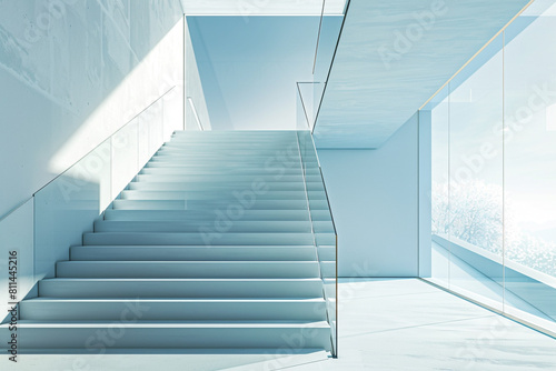 Obraz premium "Sleek cantilever staircase in a minimalist setting, ice blue with a glass...