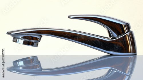 Fototapeta premium Sleek Chrome Faucet with Reflection on a Clean Surface