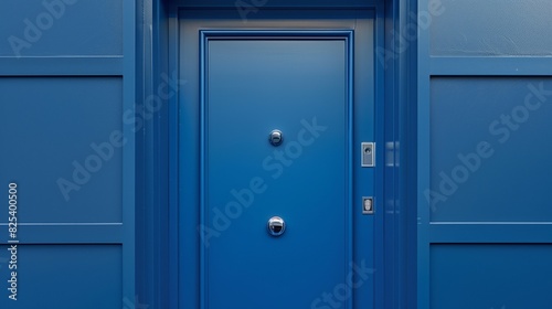 Fototapeta premium Sleek Cobalt Blue Door with Integrated Smart Lock and Minimalist Design