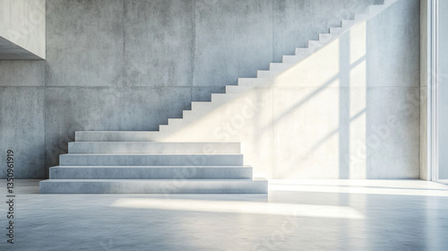 © อรพรรณ วงษ์สถิตย์, Obraz premium Sleek concrete staircase showcasing innovative interior geometric layouts in a brightly lit modern space for functional design.