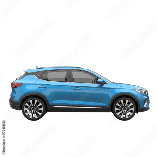 © yendisupiandi, Obraz premium Sleek crossover vehicle in azure blue showcasing contemporary automotive design and style