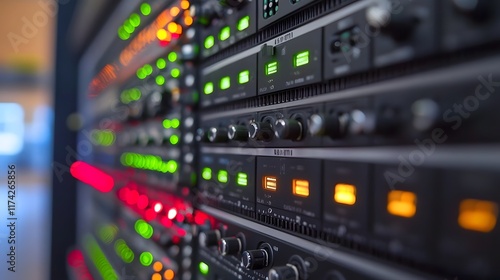Fototapeta premium Sleek Digital Data Transfer Equipment in Modern Data Center