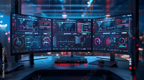 Obraz premium Sleek Digital Workspace with Real Time Data Analytics and Efficient Technology