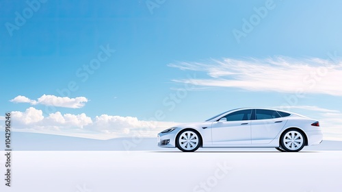 Fototapeta premium Sleek Electric Car Against a Clear Blue Sky
