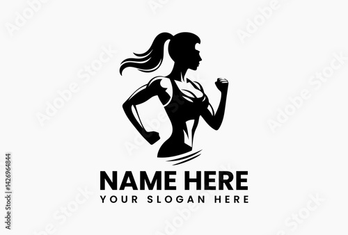 © vectorvovdesign, Naklejka premium Sleek fitness woman line art with dumbbell integration, minimalist logo for luxury wellness brands