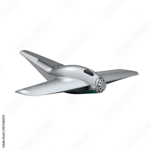 Obraz premium Sleek, futuristic aircraft design with streamlined silver body and teal...