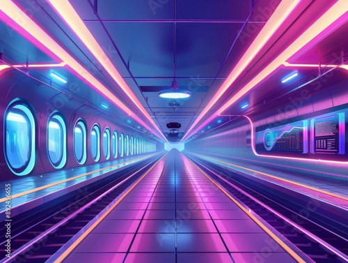 Fototapeta premium Sleek Futuristic Train Station with Neon Lighting and Futuristic Design