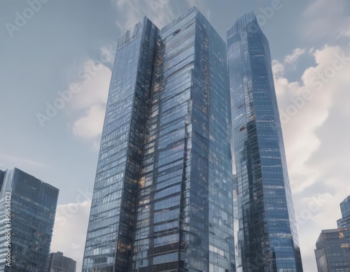 Obraz premium Sleek glass skyscraper rising, city skyline backdrop, real estate, windows,...