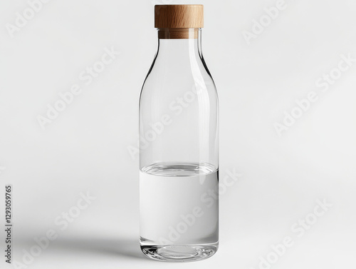 © Pornarun, Fototapeta premium sleek glass water bottle with wooden cap, showcasing simplicity and elegance