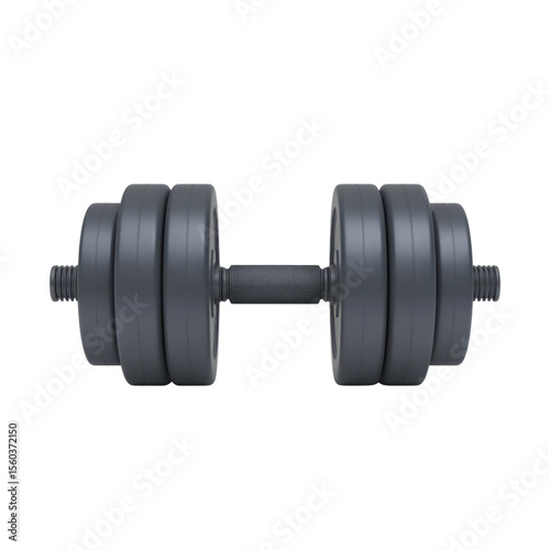 © 69, Naklejka premium Sleek Gray Dumbbell Isolated on White Background for Fitness and Strength Training Use Transparent background or PNG