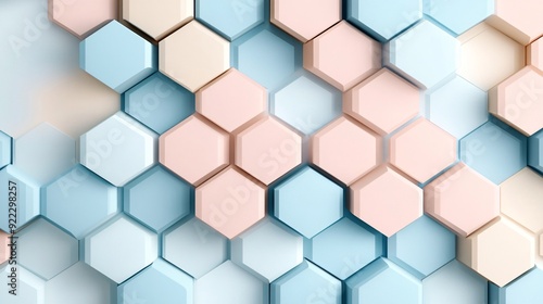 © pics3, Naklejka premium Sleek hexagonal shapes in pastel shades create a minimalist geometric wallpaper