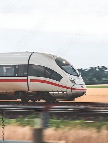 © pisan thailand, Fototapeta premium Sleek High Speed Train Traversing Blurred Rural Landscape