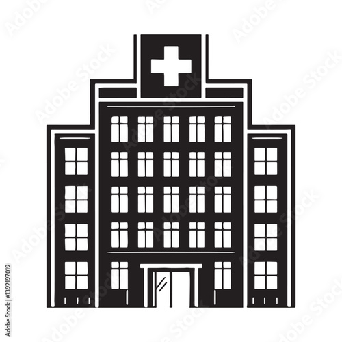 Fototapeta premium Sleek Hospital silhouette, embodying modern medicine and healing environments – Hospital illustration – Minimalist hospital vector – Building silhouette