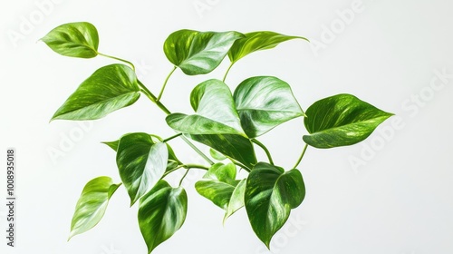 Fototapeta premium Sleek indoor plant with vivid green leaves and unique leaf shapes isolated on a clean white background