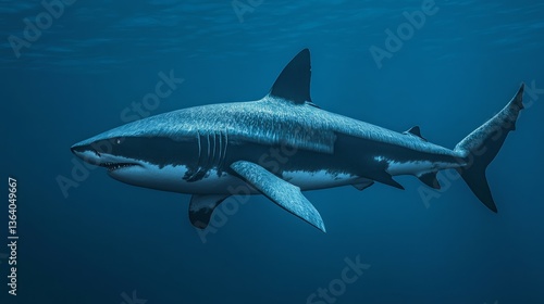 Fototapeta premium Sleek megalodon glides through deep waters, contrasting with a bulky...