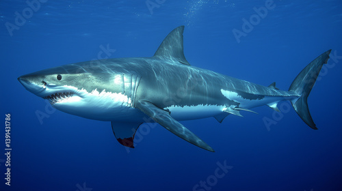 Naklejka premium Sleek megalodon glides through deep waters, contrasting with a bulky...