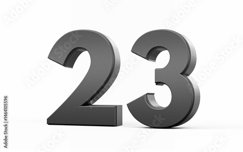 Fototapeta premium Sleek, metallic Black number 23 Twenty three standing on a white background,...
