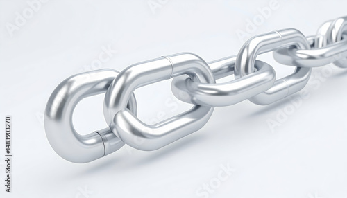 © Kreatif Studio, Obraz premium Sleek metallic chain links interlocking on plain background,symbolizing strength