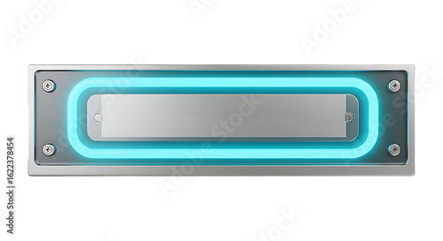 Obraz premium Sleek metallic panel with glowing cyan neon light and silver insert for...