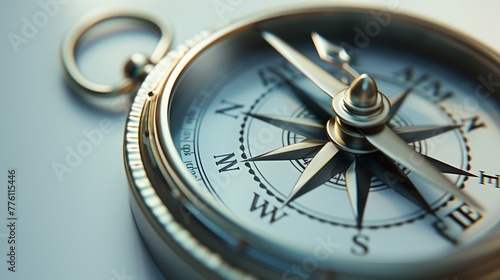 Fototapeta premium Sleek minimalist compass under soft, diffused lighting on a pure white background, symbolizing clarity in navigation