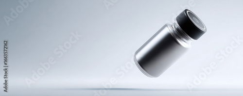 Fototapeta premium Sleek, minimalist image of a vial with a black cap, floating on a light...