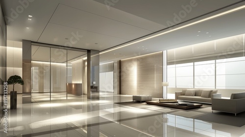 Fototapeta premium Sleek Minimalist Office Space with Neutral Decor - Contemporary Digital...