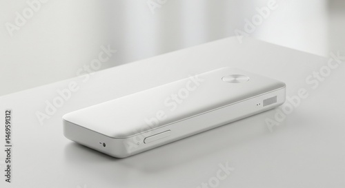 Fototapeta premium Sleek Minimalist White Portable Power Bank Device on a Modern Table: Perfect for Tech and Gadget Product Presentations