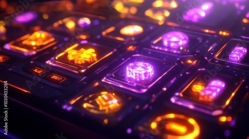 Obraz premium Sleek mobile slot game with glowing lucky symbols and haptic feedback