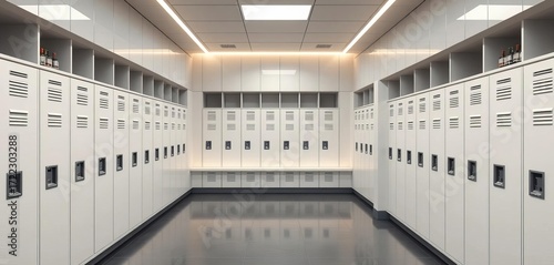 Obraz premium Sleek modern locker room with minimalist design, ample storage, modern,...
