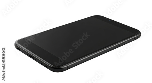© IbragimovN, Fototapeta premium Sleek modern smartphone lying flat on black surface with minimal design