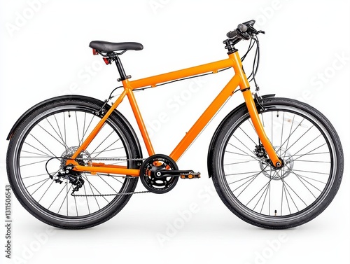 © FocusBloom, Obraz premium Sleek orange sports bike with a matte seat displayed in an isolated side view on a clean white background setting
