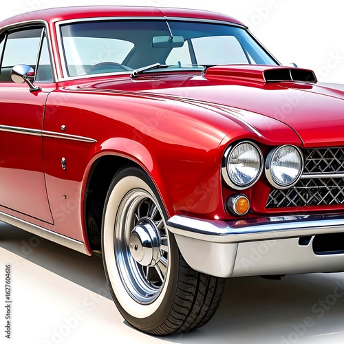 © yanti, Fototapeta premium Sleek red classic car, angled view, whitewall tires