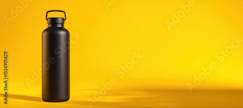 © spyrakot, Fototapeta premium Sleek Reusable Water Bottle on Vibrant Yellow Background