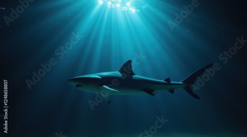 Obraz premium Sleek Shark Illuminated by Light Rays