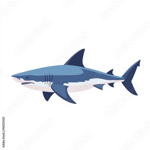 Naklejka premium Sleek Shark in Flat Design Style Swimming Through Water on White Background -...