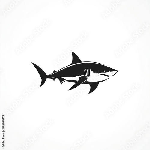 © Priyanut, Fototapeta premium Sleek Shark Silhouette: Minimalist Black Logo Design
