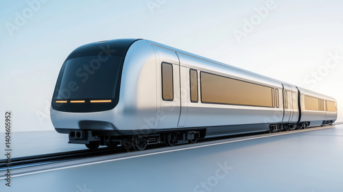 © Keopaserth, Naklejka premium sleek silver chrome subway train glides along tracks, showcasing modern design and technology. futuristic look evokes sense of speed and innovation in urban transportation