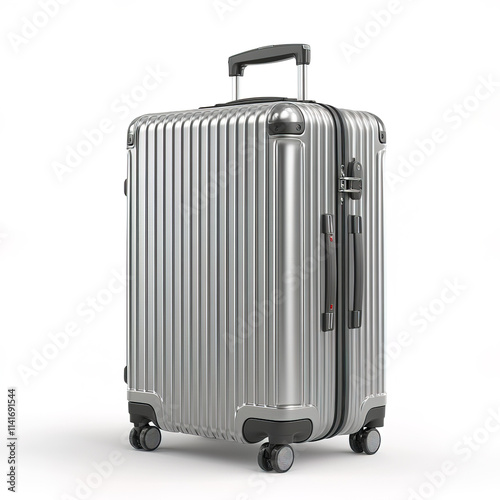 Fototapeta premium Sleek silver hard shell luggage with modern design and durable features