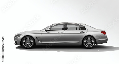© agung iman kurniawan, Obraz premium Sleek Silver Metallic Luxury Sedan Automobile Transportation Object on White