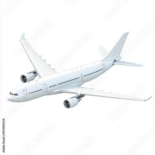 © PeterSailore, Obraz premium Sleek White Airplane in Flight , white background cut out PNG