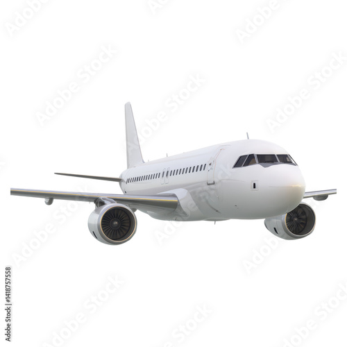 © JK_kyoto, Fototapeta premium Sleek White Airplane with Blue Sky Background for Travel Concepts, isolated on transparent background.